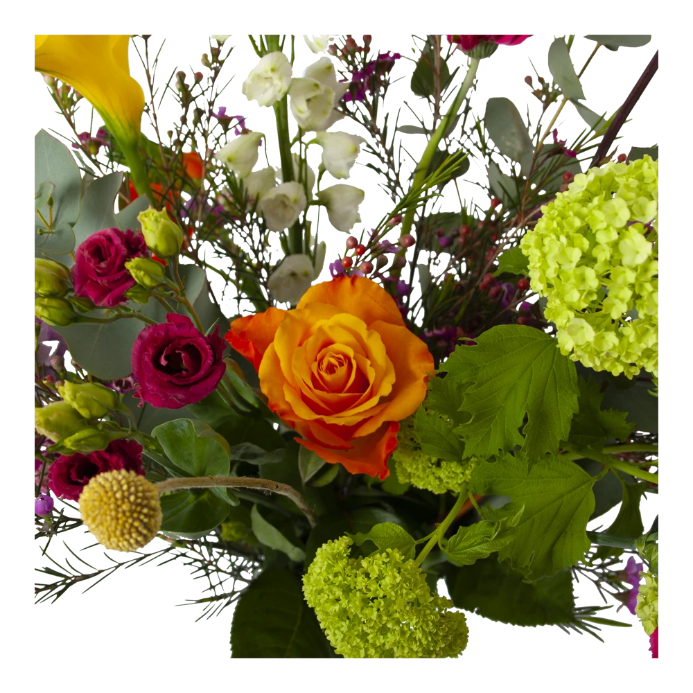 De combinatie van de verschillende bloemen geven het veldboeket een frisse en leuke uitstraling. Een boeket dat in vrijwel elk interieur past. Bovendien geschikt voor verschillende gelegenheden, zoals feliciteren en bedanken of verstuur zomaar dit prachtige handgebonden boeket en verras de ontvanger! * Exclusief accessoires en vaas
