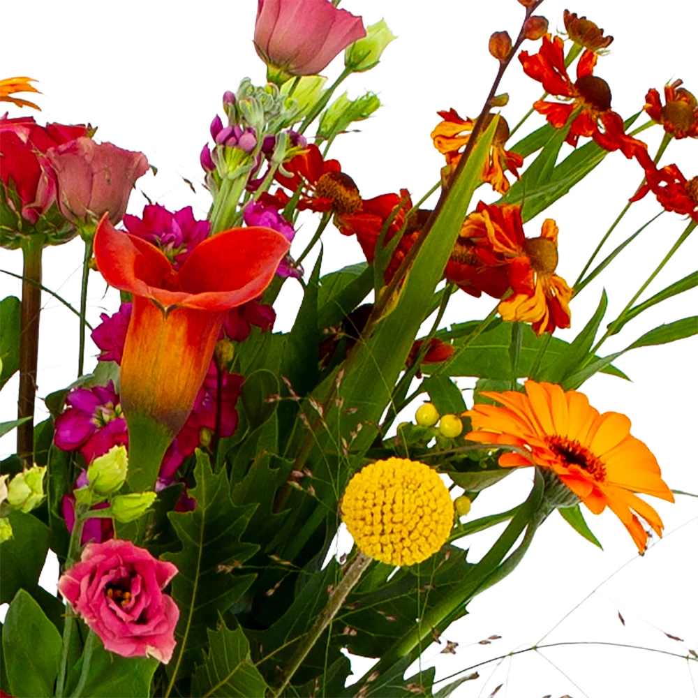 Met Boeket Hippe Herfst breng je gezelligheid en de herfst in huis. Het boeket bevat prachtige bloemen met herfst tinten. Verwen jezelf of breng bij iemand anders een lach op het gezicht! * Exclusief accessoires en vaas