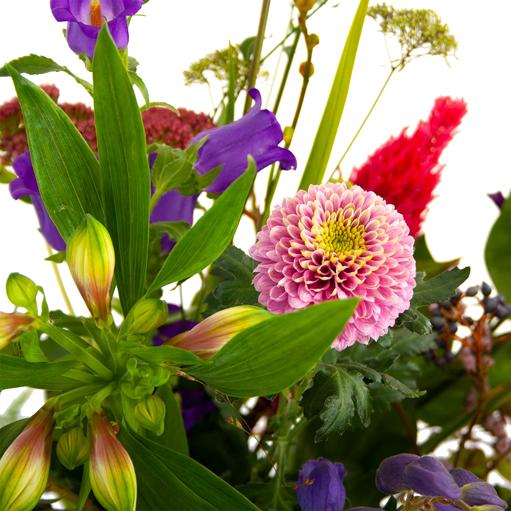 Met Boeket Paarse Passie breng je een prachtig boeket met paarse tinten in huis! Verwen jezelf met mooie bloemen of verras iemand anders! *Exclusief accessoires en vaas.