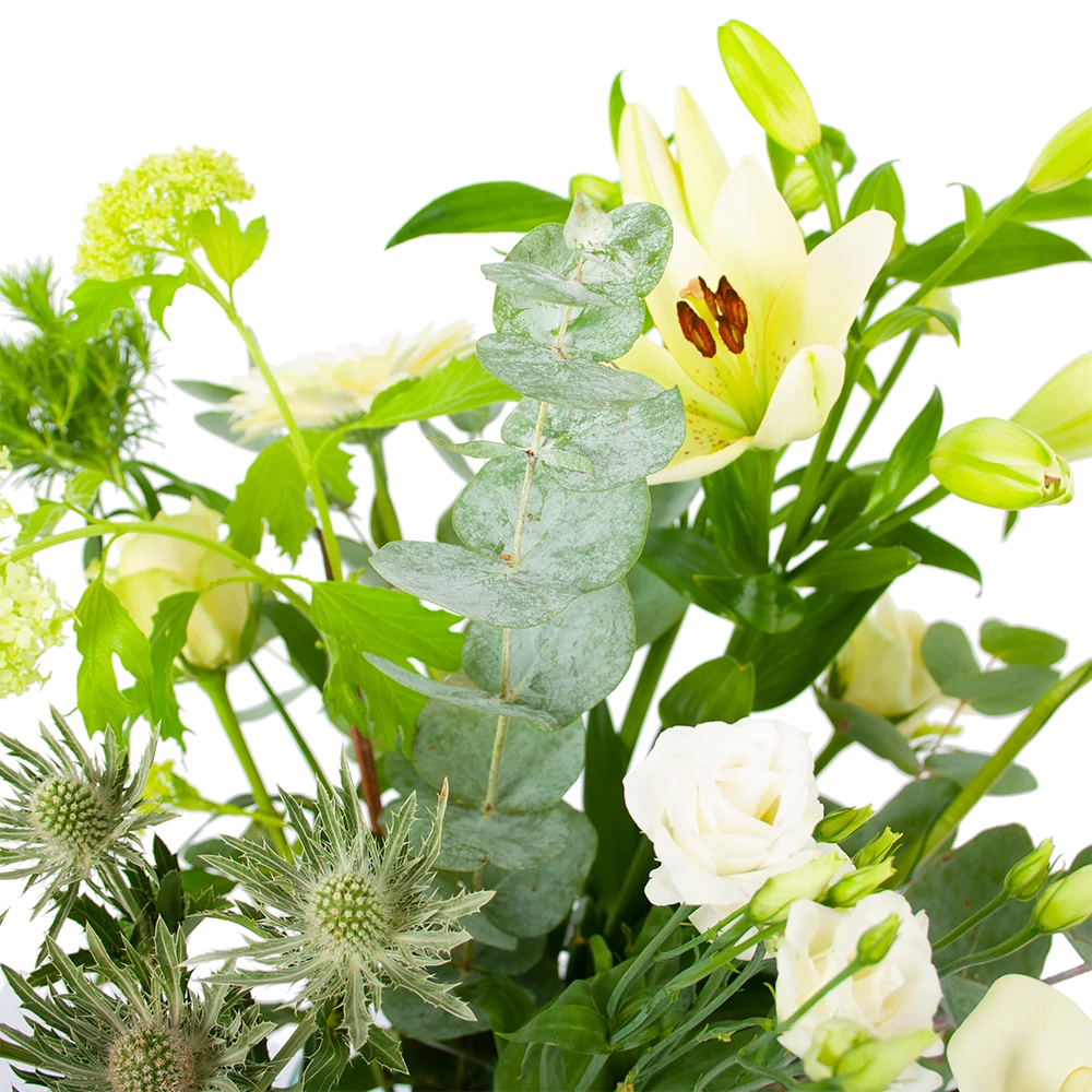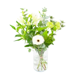 Met Boeket Wit gebaar haal je een prachitg wit boeket in huis! Geniet van de mooiste witte bloemen. Altijd vers van de kweker! Verwen jezelf of verras iemand anders met een prachtig boeket. *Exclusief accessoires en vaas.